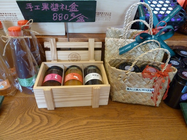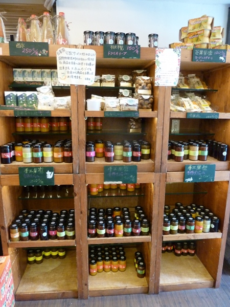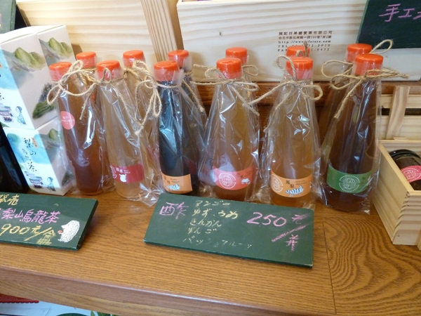 色々な種類のドライフルーツやジャム、フルーツ酢などがそろう