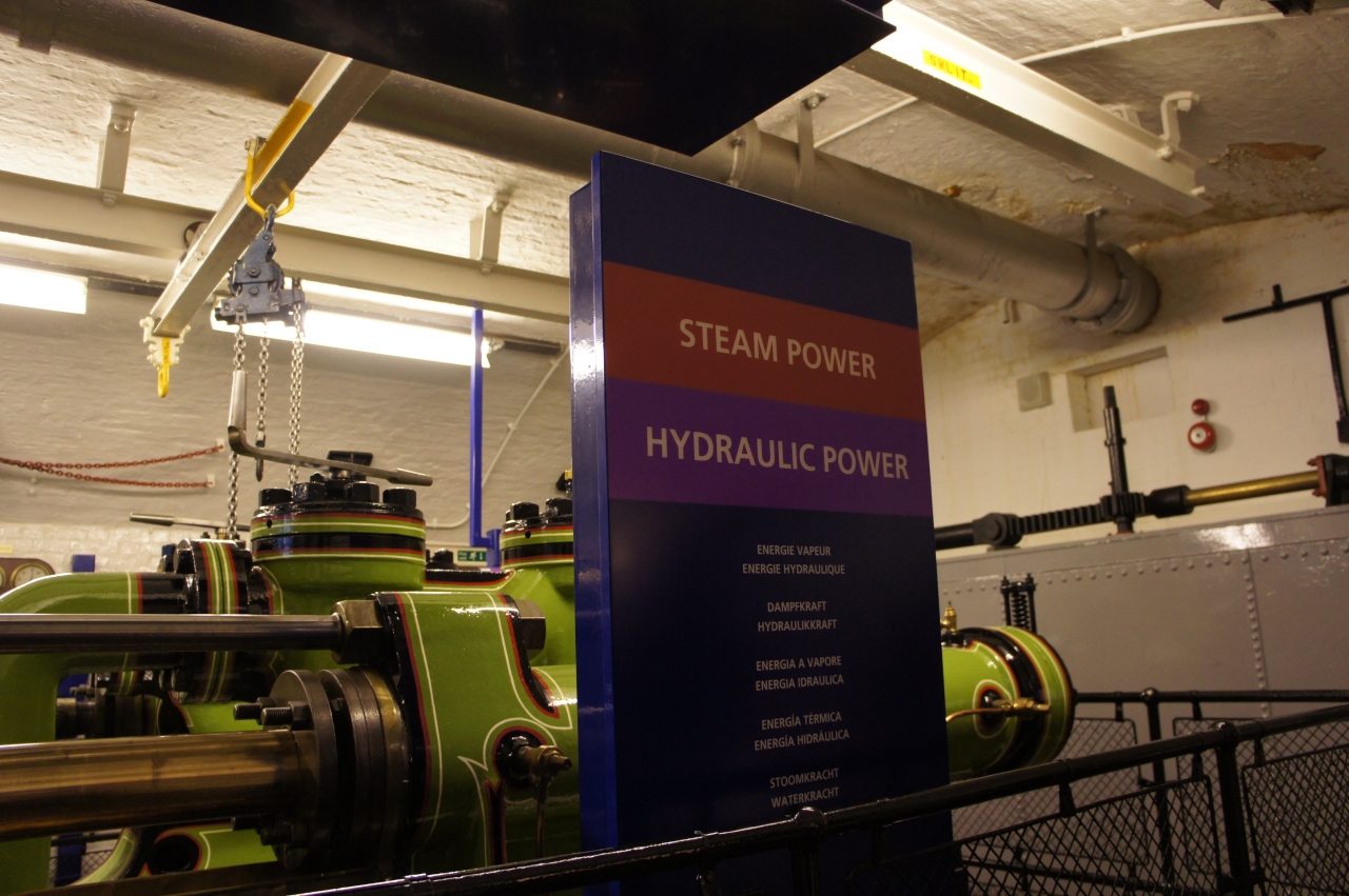 チケットを購入してこのタワーブリッジのExhibitionに参加するとタワーブリッジの歴史やどのように建築したかについて映像で見ることができるうえ、上部通路を通って地下のエンジンルームにある初期の動力源となっていた蒸気機関を見学することができます。