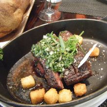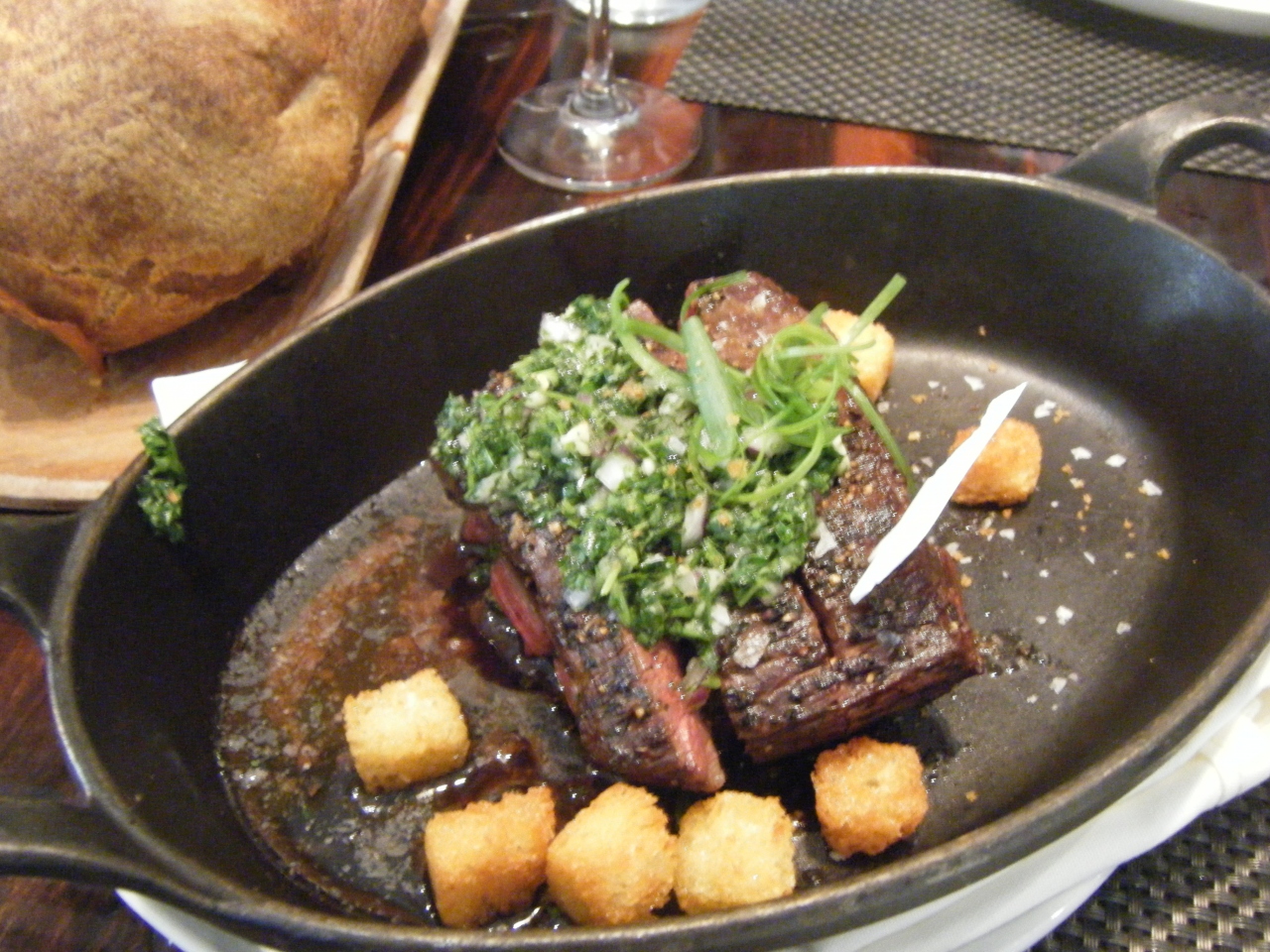 前から来てみたかったんですよ。一人だと予約しづらいし、評判の店なので、友達二人を誘ってにご馳走しました。案内されたのは奥のボックス席で、まずはシャンパンオイスターカクテルをつまみながら乾杯して、軽く1本空けてしまいました。メインの肉料理は私はハラミに決めていましたが、あとの方はシーフードとステーキをそれぞれ好きに選んで、赤ワインをまた1本空けました。ポップオーバーがまた美味いんだよねー堪らなかった。サイコー!!!