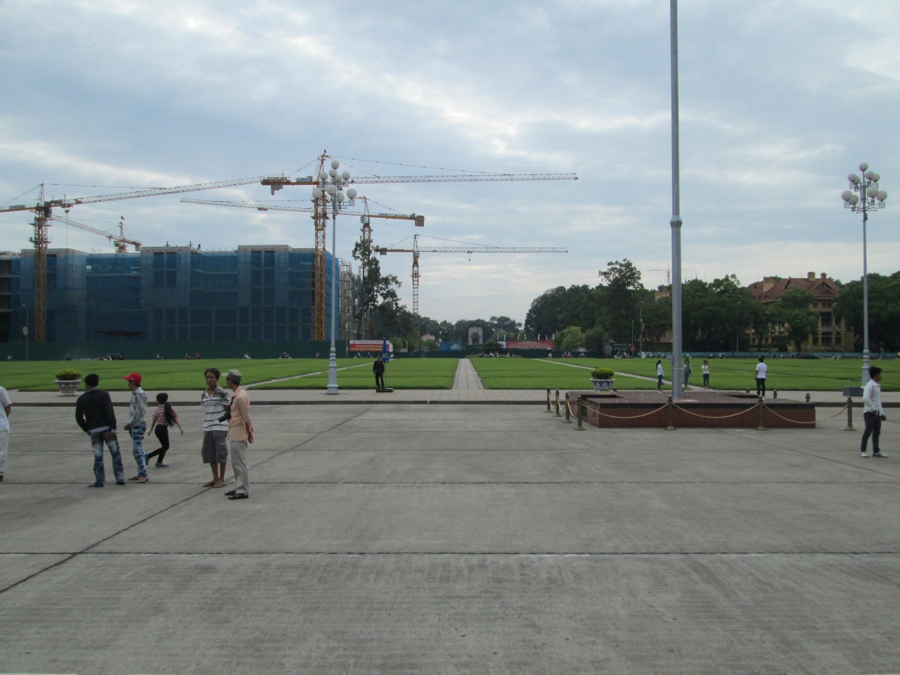 市内ツアーで行きました。残念ですが、ガイドさんの話によると、毎年、この時期はホーチミン廟はホーチミン氏の遺体メンテナンスのため外観のみの見学となるそうで、入れませんでした。大きい広場や建物そのものの大きを見てベトナム人にとって偉大な人だったことが分かりました。建物は国花であるハスの形にしているそうです。