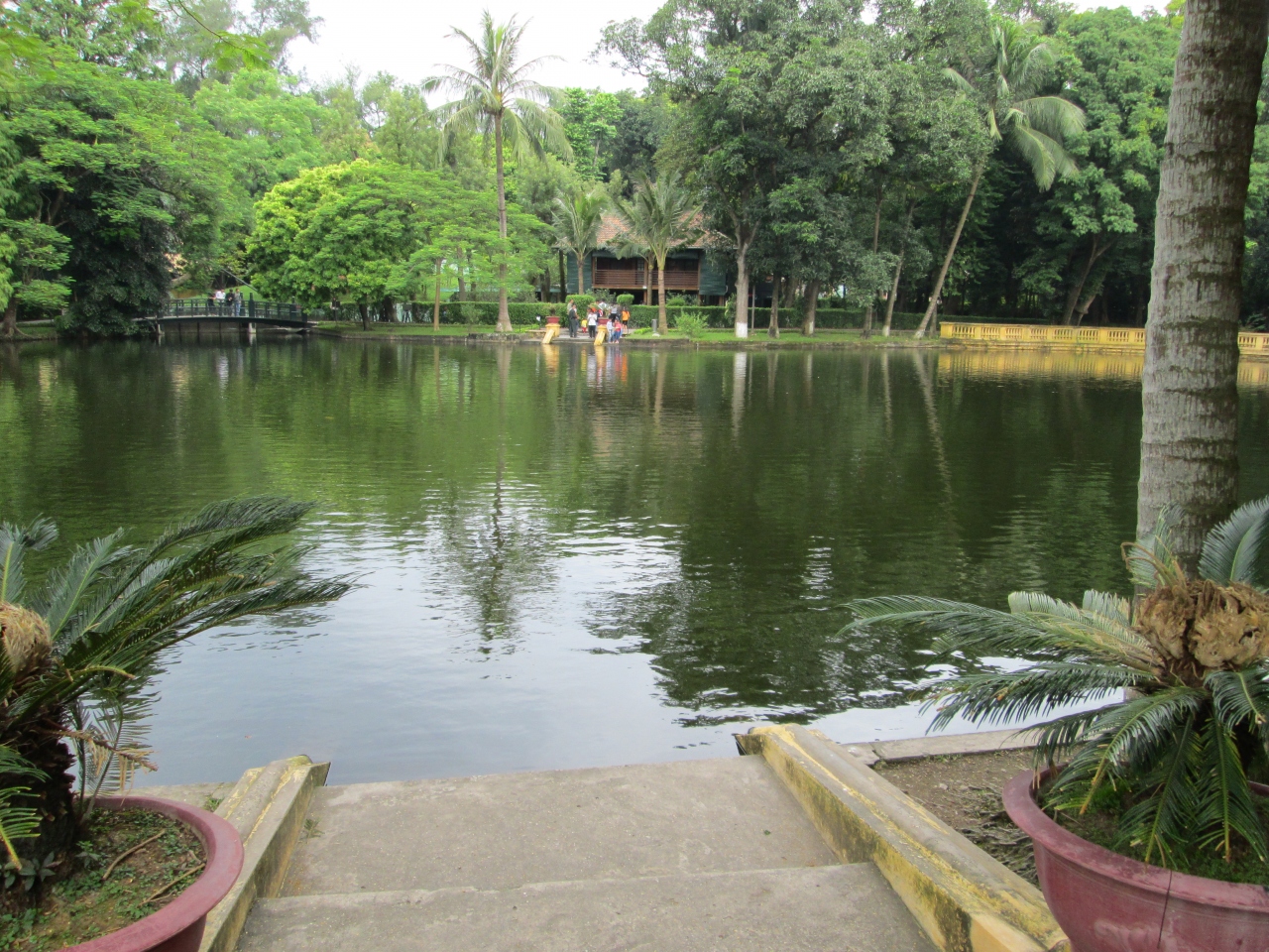 ホーチミンが実際に暮らしていた家。中に入ることはできませんが、1階には会議室、2階には書斎、寝室、別の建物には食堂があり外から見学することができます。家の1階には子供たちを呼んで遊んだり、話をするスペースがあり庶民的な方だったということが分かります。家の前には大きい池があり、鯉がたくさんいて、家と池を写しながら記念撮影するときれいな写真が撮れます。市内ツアーで行ったので料金込みでしたが、入場券には2万5千ドンとなっていました。