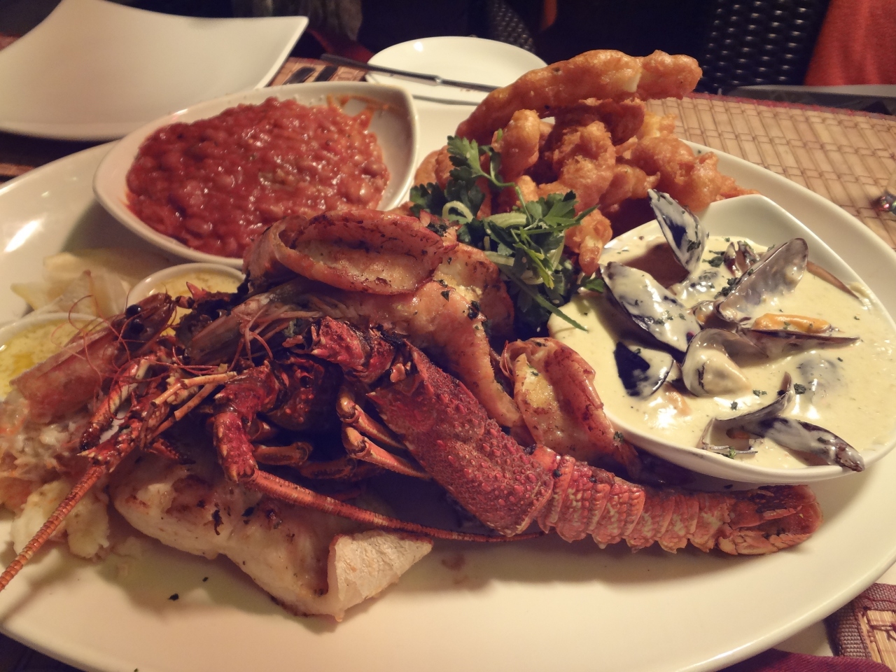 本日のオススメの「シーフードプラッター」をオーダーしましたが、あまりの巨大サイズに食べきれませんでした。