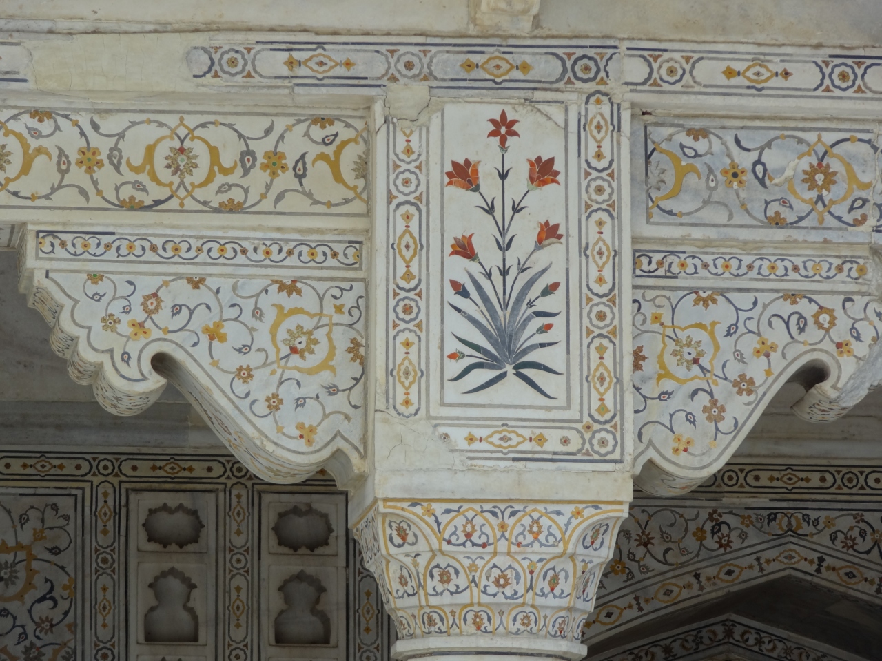 広大な敷地に様々な建物が建っています。ガイドブックでは「地球の歩き方」よりも「aruco」の方がここについて詳しく書いてあります。でも歩いていると何が何だか分からなくなってきました。あまり建築に興味がなくても、壁面装飾は大変見応えがありますし、あちこち歩き回るのも楽しいです。相変わらずムガル朝の財力には圧倒されます。