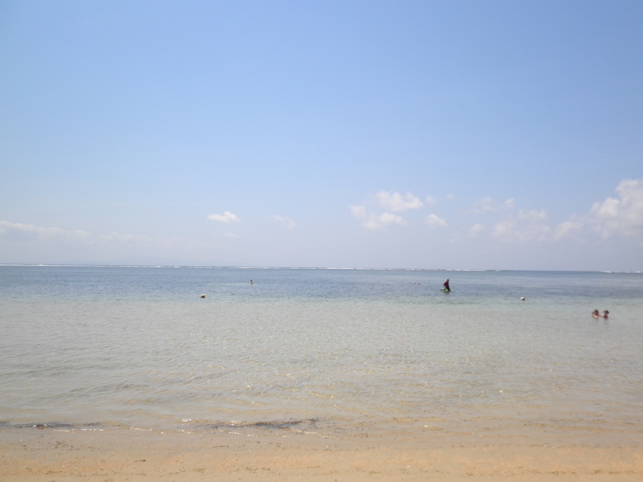 - 海は穏やかで、きらきらしてます。遠浅で泳ぐにはどうかな?干潮になるとどこまでも砂地が続きます。