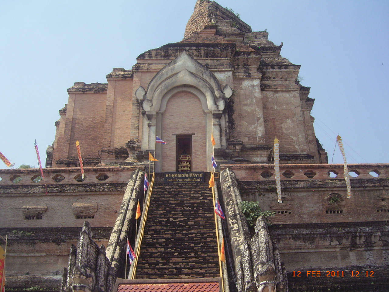 城壁内の中央にあります。境内に入ると本堂があり、その裏手に半壊した大きな仏塔があります。正四角形で造られていて、各面には仏像がはめ込まれています。台座は象が支えています。本堂も大きく中に仏像が安置されています。