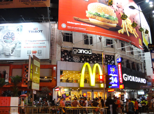 クアラルンプールの一番の繁華街です。マッサージ(リフレクソロジー)のお店が多く、価格も安いのでちょっと休憩時間などに受けれてくつろぎました。ショッピングもお店がかたまっていてそんなに歩かなくていいのであまり時間がなくても一通り周れました。欧米人もこのあたりは多く遅くまでレストランが賑わっているのでじょせいだけでも宿泊先によりますがそんなに危険な印象はなかったです。