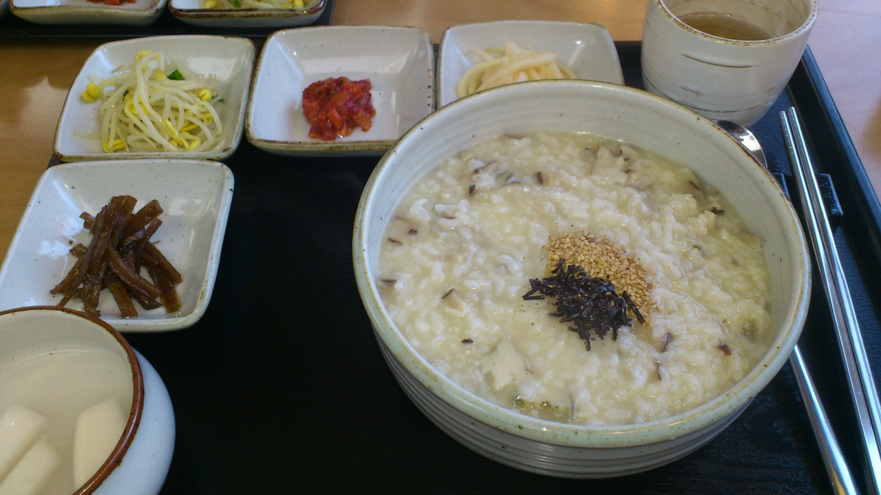 朝ごはんを食べに行きました。同じビルのソルロンタン同様に行列ができていました。ただ、お客はほとんど日本人(笑) やっぱりアワビ粥でしょうと思い注文しました.