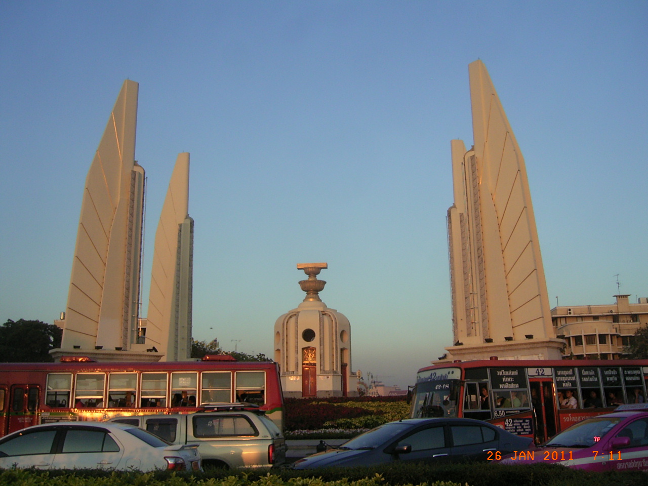 ブラ・ラーム・ヌン通りにあります。大通りの中央にあります。20世紀前半にこの国が立憲君主制になったことの記念としてこのモニュメントが建てられました。4つの塔には革命の記録が書かれています。4つの塔はまるで羽根のようです。
