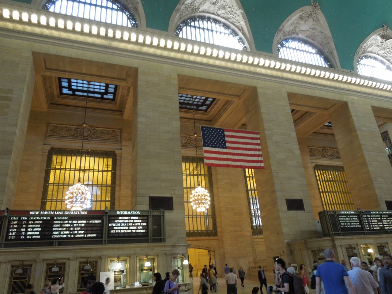 広場になっている所にはアメリカ国旗がかかげられ人々が行きかう。