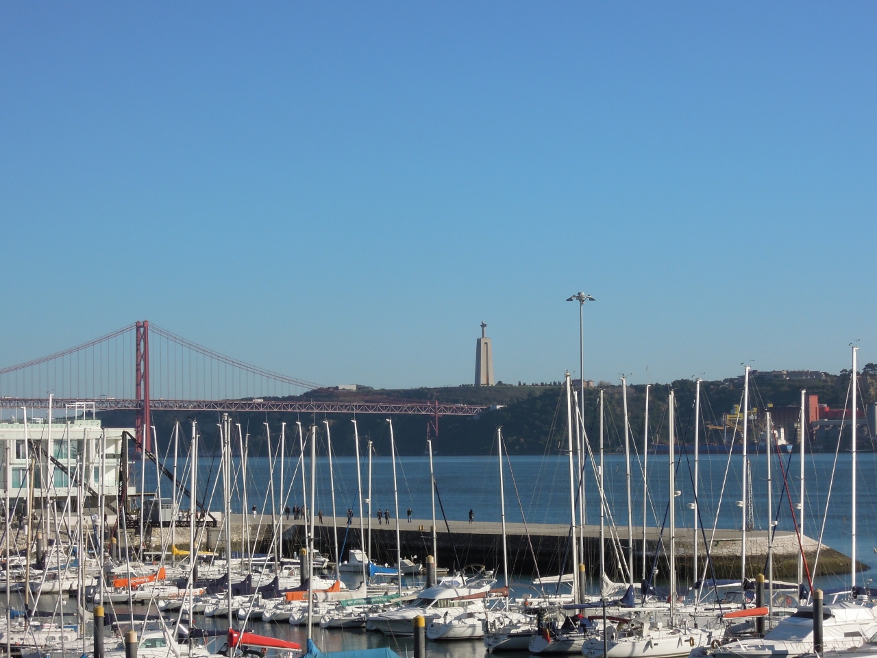 リスボンとアルマダ地区を結ぶつり橋です。上段が道路、下段が複線の鉄道となっています。長さが2km以上もある長いつり橋の通行料は片方(アルマダからリスゴンへ入る方向)は有料だそうです。全方向無料にできない経済事情もあるのでしょう。