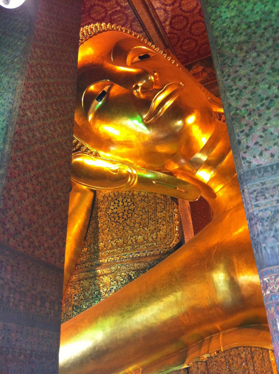 あえてMRTのフワランポーンからトゥクトゥクで行ってみました。交渉力がないのでぼったくられましたが・・・(BTSのサパーン・タクシン駅から水上バスで行けます。)入場料を払うとガイドみたいな人がいてかんたんな案内してくれました。靴をぬいで涅槃像へ。いろんな国の観光客が記念撮影してました。ちいさな壺がたくさんあって願い事をしながら全部の壺にいれるらしいです。両替できるようになってたのでお願いしてきました。今回は時間が無くマッサージはパス。次回はマッサージもしたいです。帰りは水上バスでターチャンからサートンへBTSはすぐでした。個人的には夕方がおすすめ。対岸のワット・アルンがキレイです。