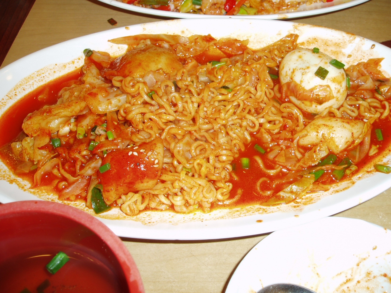 初めて行った時に、地元の人が食べていたトッポッキにラーメンが入ったのを見て、次回はあれに挑戦!って思っていて、2度目の来店です。お店は狭くてごちゃごちゃしていますが、お店の人は手際よいです。店先で海苔巻きを巻いてくれてるのも嬉しいです。エゴマの葉が韓国っぽいいいお味を出しています。