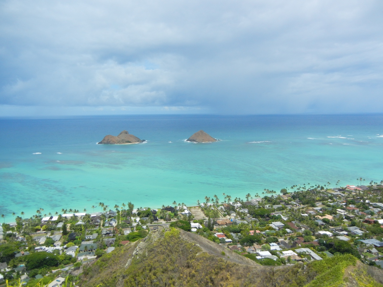 ラニカイビーチを山頂から眺められる絶景場所に行きました。山頂までは20分くらいかかります。けっこう急斜面で切り立った岩場も多く未舗装されてないので怪我をしない様注意が必要です。体力も使うので水分補給を持参して履きなれた靴で必ず行きましょう。登山途中は柵のない崖がいくつもあるので気をつけましょう。