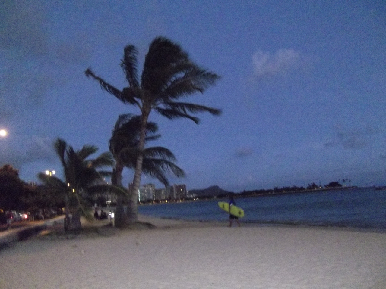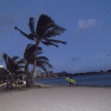 観光客は少なく夕暮れのビーチは静かで落ち着いた雰囲気。