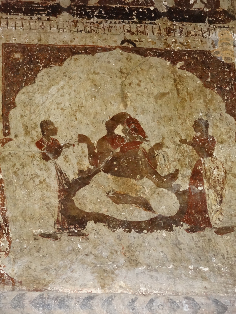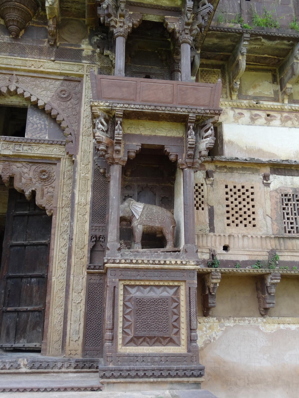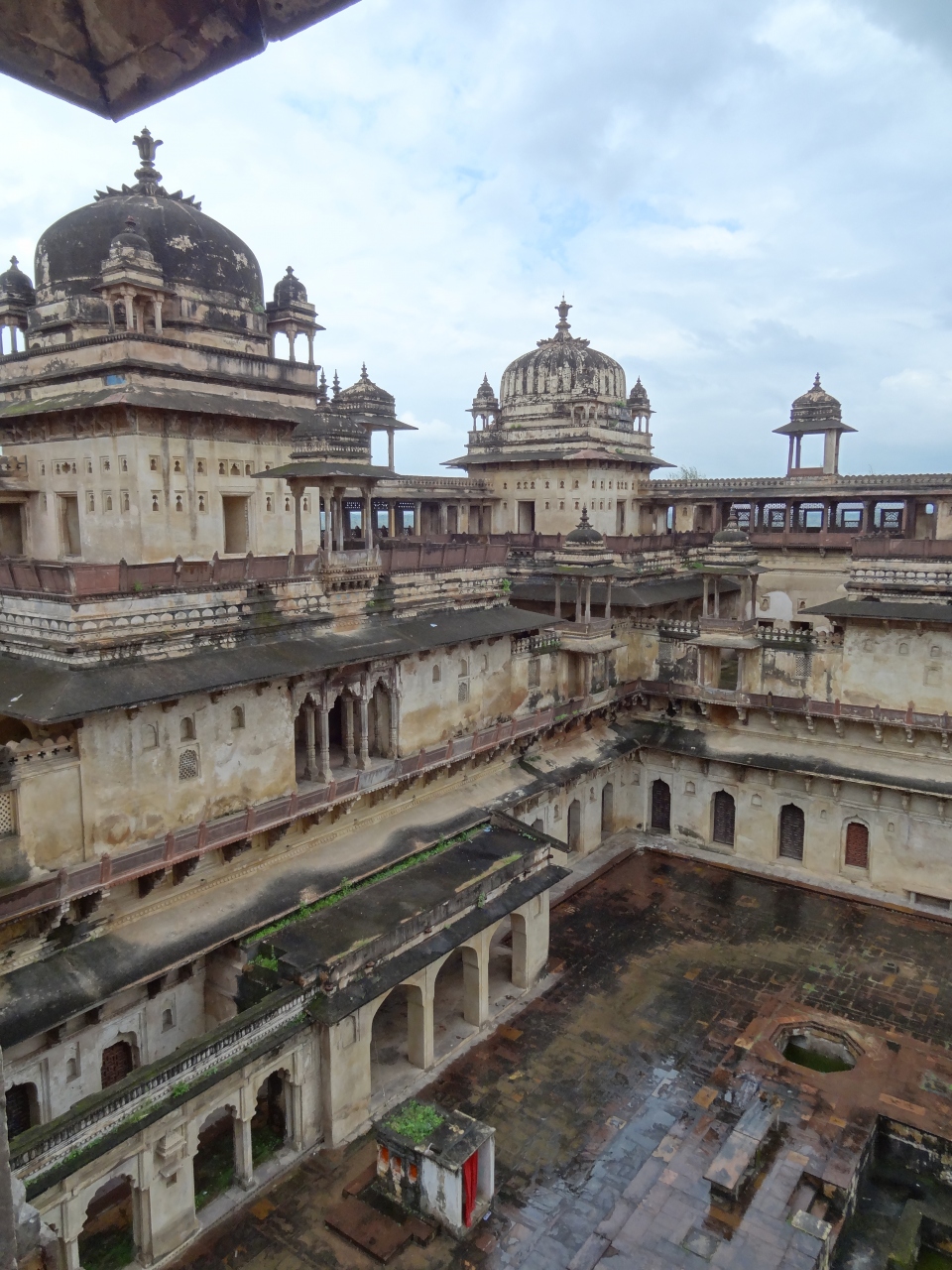ジャハーンギール・マハルはムガル皇帝ジャハーンギールを迎える為に建てられた宮殿で、壁画の類は残っていませんが、小さな狭い階段を上がって最上階まで行けます。ここからオルチャの町が一望できます。
