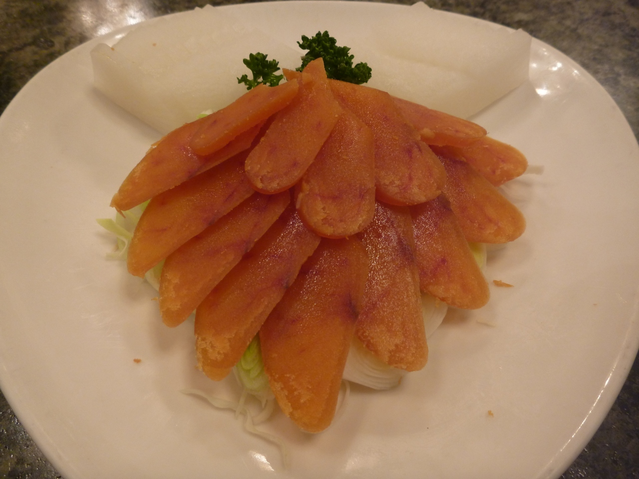 有名店ようでしたので、お昼より少し早めに行って余裕で席に着くことができましたが、あっという間に満席状態でした。やはり人気店のようです。こちらで初めてカラスミをいただきました。濃厚な味で少し食べれば充分かな。イカのすり身をだんごにした手打花枝丸がおいしかったです。