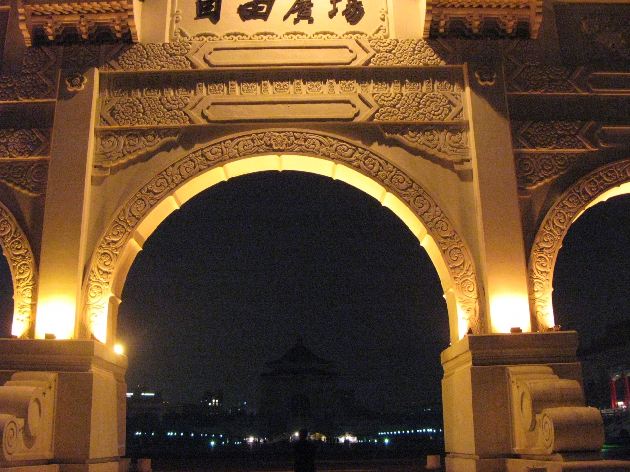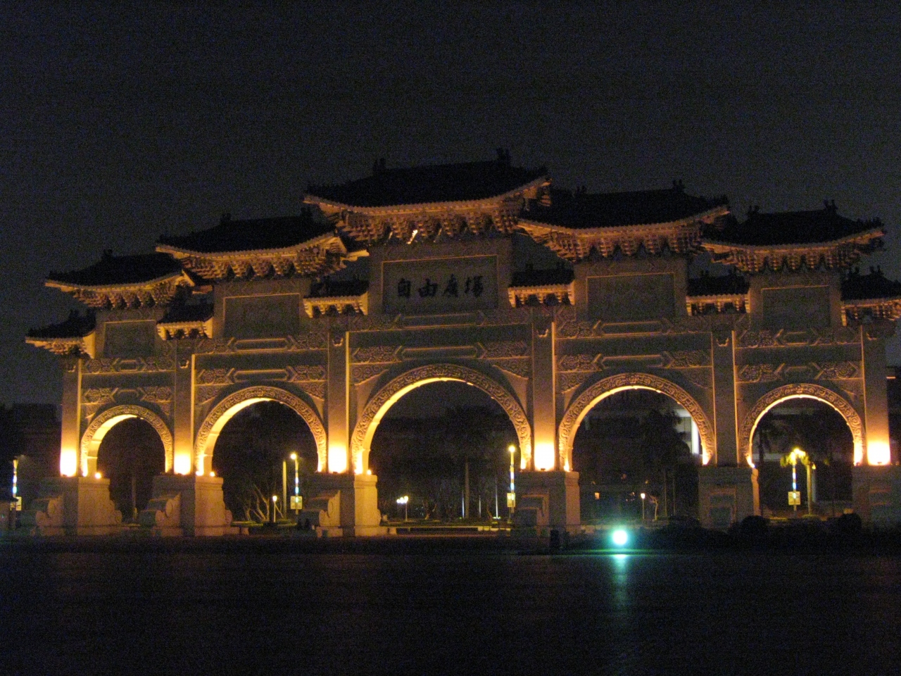 - 夜間は施設内には入れないが、広い広場と門や紀念堂の大きさは実感できる。もちろんタダ。