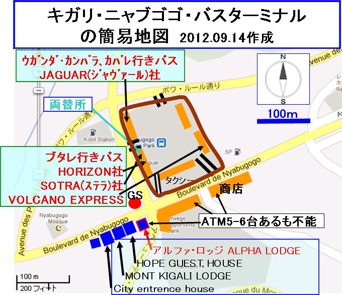 ニャブゴゴ・バスターミナルの簡易地図を作成してみました。