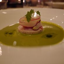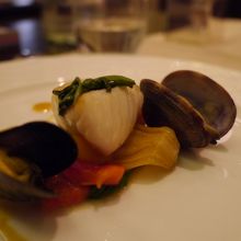 シェフが出てきて自分の出ていた雑誌を見せたり談笑したりとフランス人の客と。