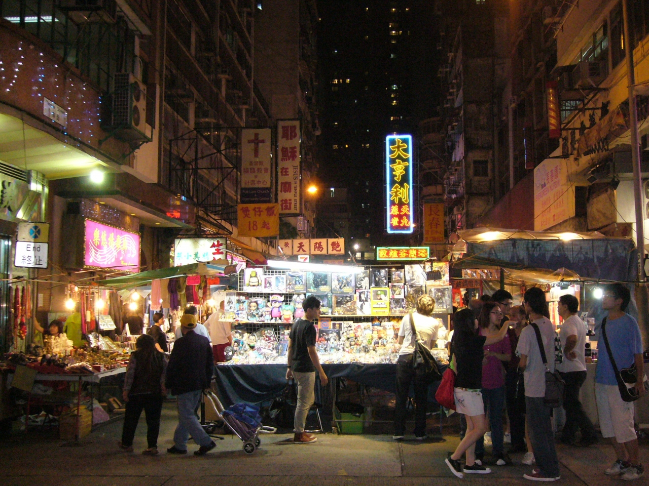 ネイザンロードの西側の通りで、佐敦駅から油麻地にかけてあるj長い露店/屋台街です。深夜までやっていて、観光客や地元の人でごった返しています。