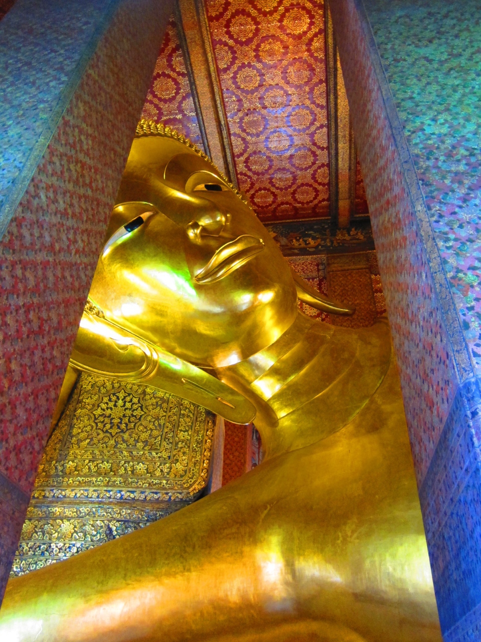 バンコクのワット・ポー寺院は去年の洪水以降拝観料が値上げになったこともあり、チケットブースや、本堂のかわらや、拝観する人の履物を入れる袋を導入するなど、寺院としてのあり方より観光地としてのあり方が前面に出てきてしまって私は少し残念な気がしました。涅槃像は見ごたえがあるけど、ちょっと寂しい気がしました。