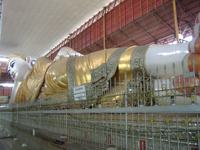 巨大な仏塔に巨大な寝仏が祀られています。昔タイで有名な寝仏を見ましたが、タイの寝仏様の方が荘厳な感じがしました。こちらはちょっと安っぽい感じです。私の感想ですが、ここはヤンゴンで時間があれば寄ってみるという感じでいいと思います。