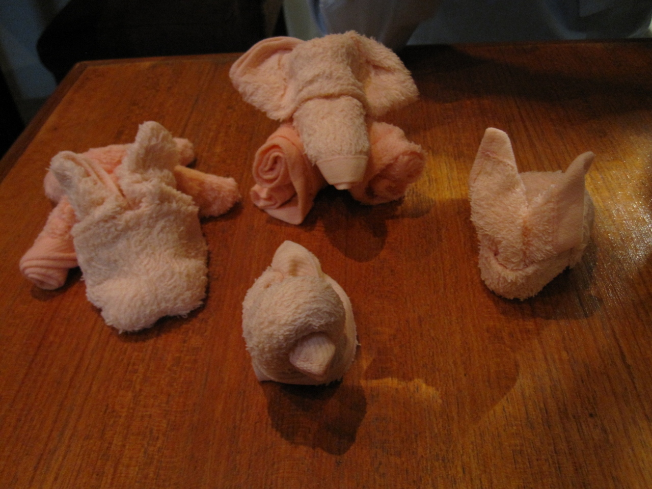 スタッフはとても親切で、食後にタクシーを呼んでもらっている間にも、お手ふきで象やウサギを作って楽しませてくれました。