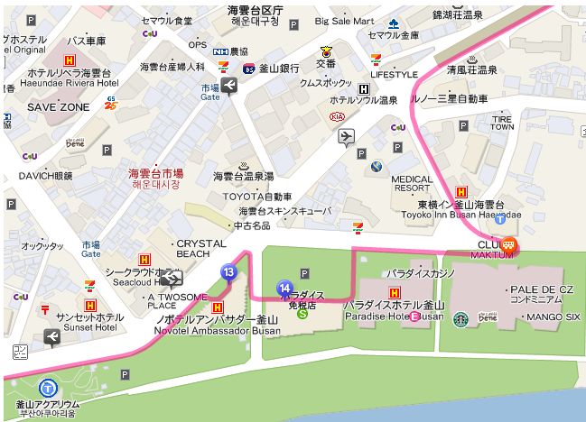 釜山の金海空港から直接海雲台に行きました。帰宅時間帯だったので1時間近くかかりましたがシートピッチも広く快適でした。値段も日本円で500円以下だったと思うのでコストパフォーマンスは高いと思います。乗り場は到着ロビーを出て2番乗り場からパラダイスホテルに行くバスに乗ると海雲台中心部に行けます。