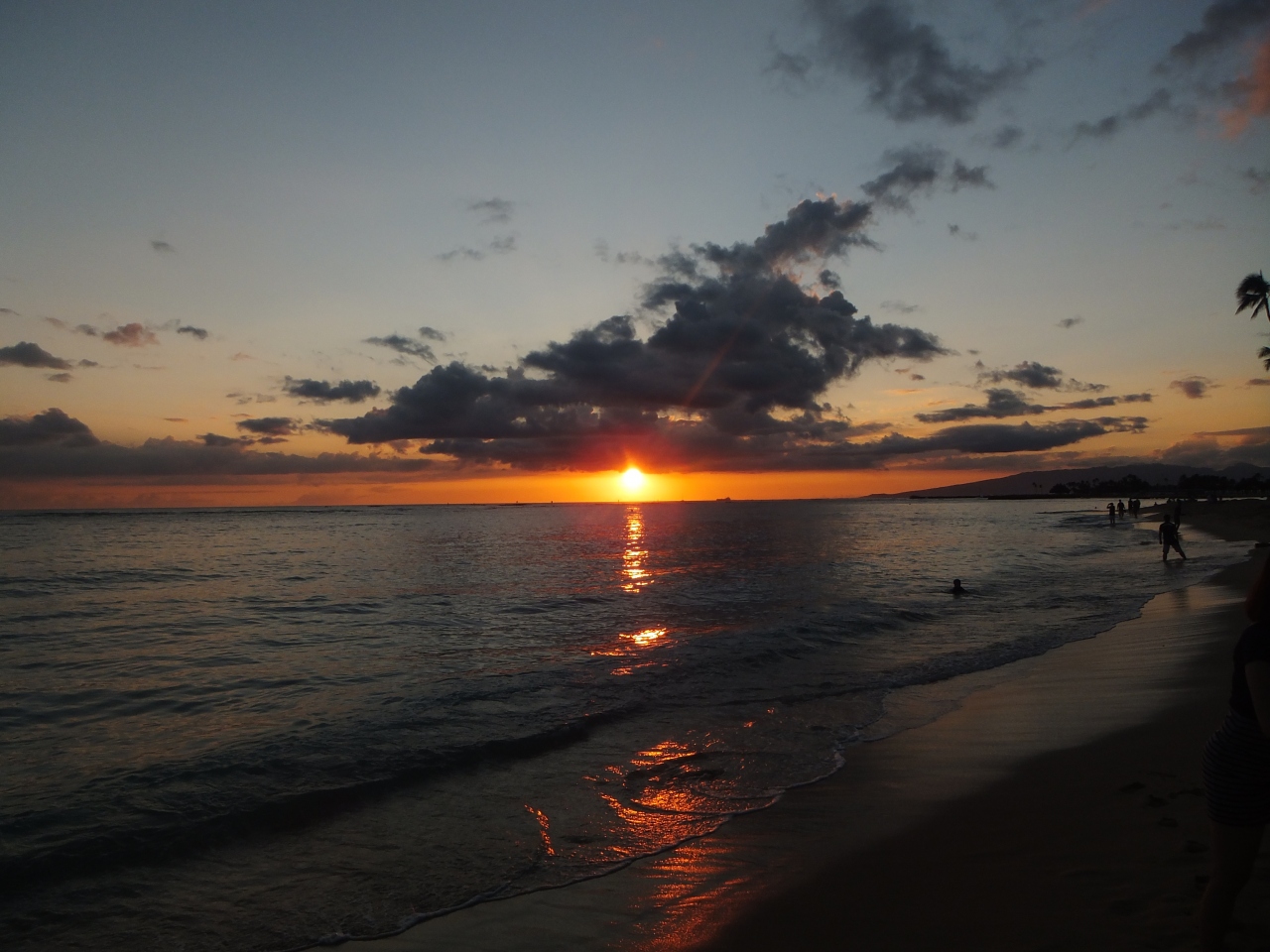 こちら泳いだり、ボードをしたり、釣りをしたり、サンセットを見たりと色々な楽しみ方ができるワイキキビーチ。