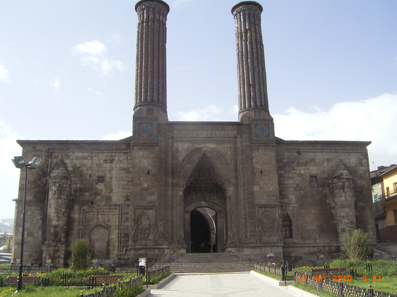 市の中心から少し東側にあります。近くには城塞跡があります。また、さらに東にはかつての城塞と門の名残があります。この神学校はセルジューク朝時代のものです。2本の重厚なミナレットが印象的です。内部もアラベスク文様が素敵です。
