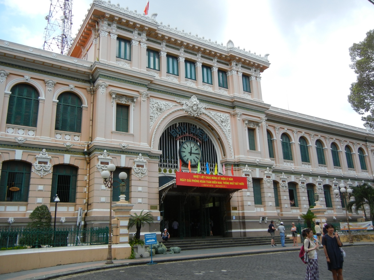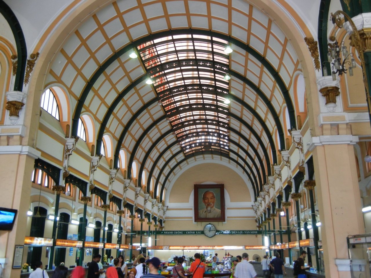 建物はサイゴンマリア教会の道路を挟んだ目の前にあります。つくりはとても立派、天井と奥行きがあり、とても豪華で開放感あります。建物はフランス植民地時代に建てられたものらしく、とても西洋文化を感じます。正面奥にはホーチミンの肖像画がありました。