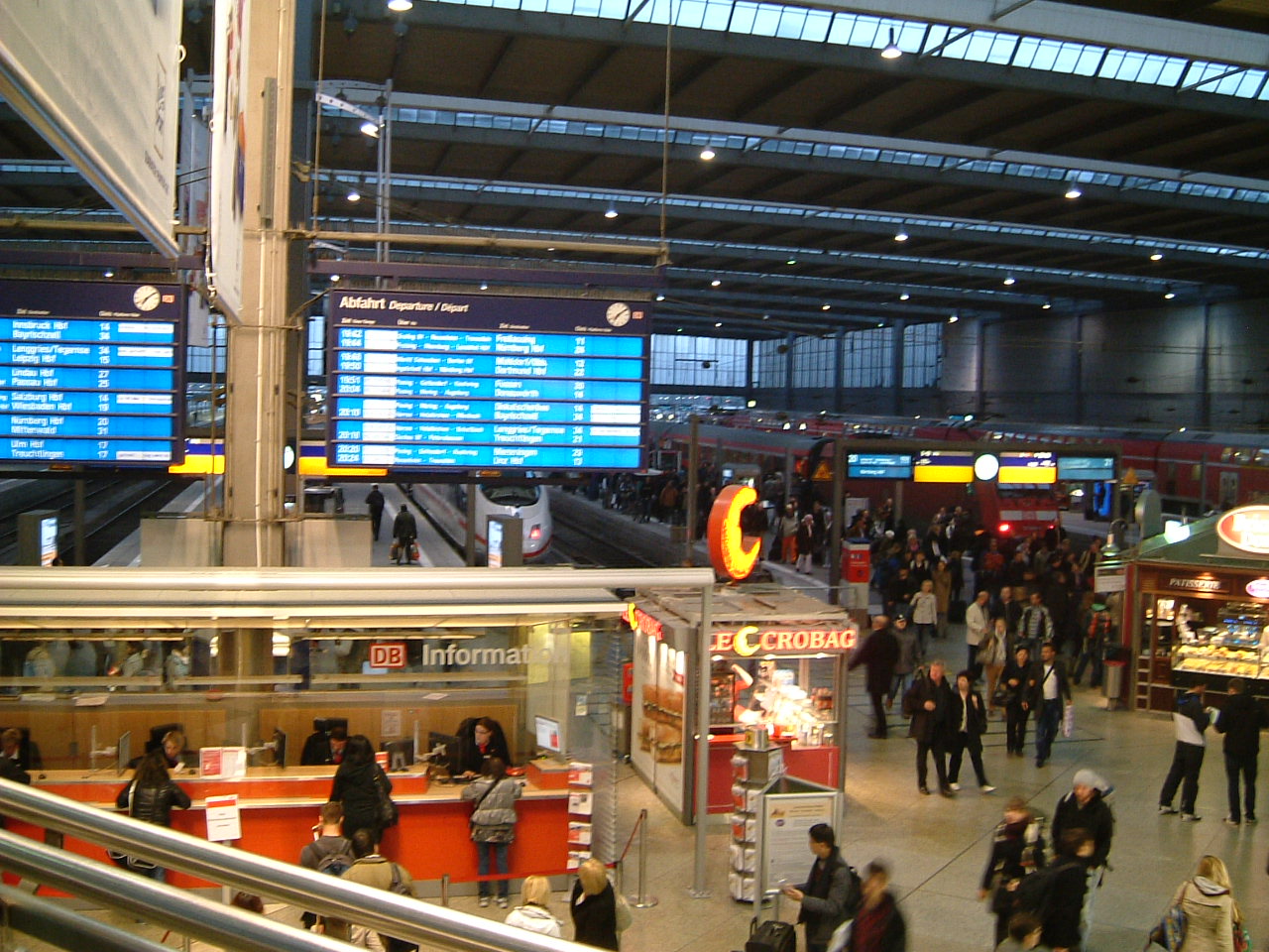 大きな駅ですので、ちょっとした食べ物(すぐに食べられるもの)が豊富にそろっています。土日などでもやっているお店はありますし、ミュンヘン市内が宗教行事で軒並みお土産屋さんがクローズでも駅構内のお土産屋さんはオープンしていました。