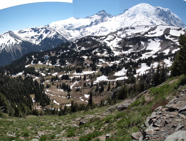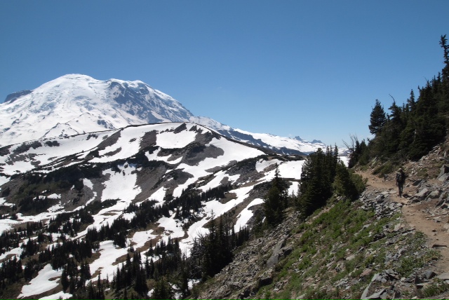 シアトルからレーニアに近づくにつれ、レーニアが大きくなってワクワク感も増していたのに、実際にレーニアに入ると近すぎて姿を見られることが少なく残念に思っていたこともあったので、このトレイルは私の理想でした。