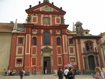 プラハ城の聖ビート大聖堂とその展望台を上り、旧王宮を経てこのイジー教会へ向かいました。教会の正面の彩りは落ち着きのある土色をしており目も癒されるようでした。