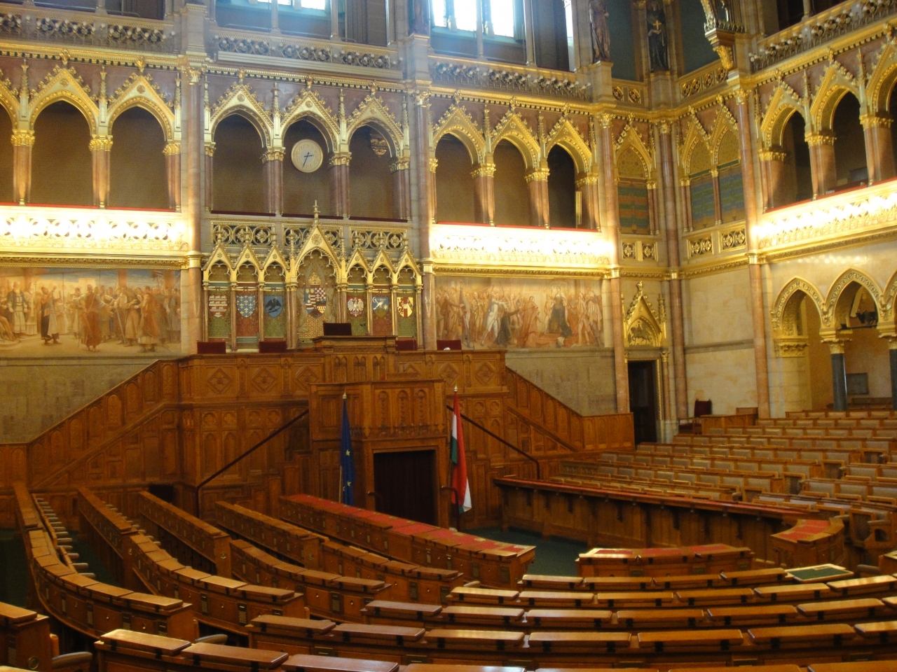 入口から廊下、大階段を通り、順に議場まで案内されます。すべての装飾が豪華ですばらしく、議事堂とは思えない美しさでした。とくに議場は絵画と金の装飾が豪華で、目を見張りました。また、聖イシュトバーンの王冠も保管され、厳戒態勢の中見学することができます。