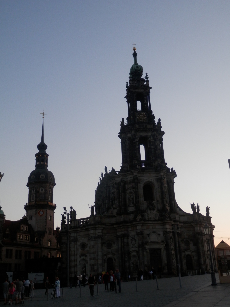 エルベ川にかけられたアウグストゥス橋のたもとにあります。ホテルが近かったこともあり、エルベ川岸を散策する際に、何度も前を通りました。この教会の屋根にはたくさんの聖人像があり、印象的です。また、時間によって教会の建物や聖人像の雰囲気が変わるので、面白いです。夜になるとライトアップされるので、それもまた素敵でした。