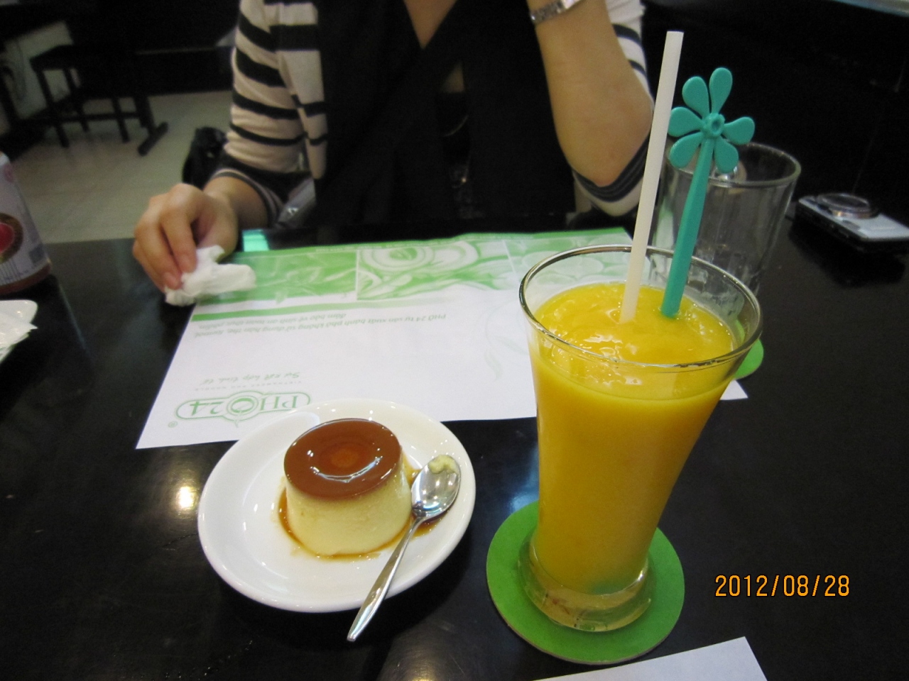 あとから、友人と2人で、マンゴースムージーとプリンを追加注文。