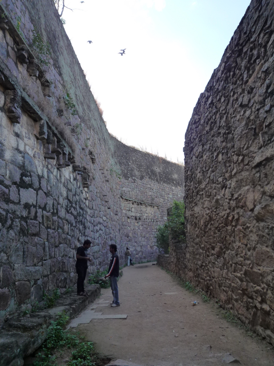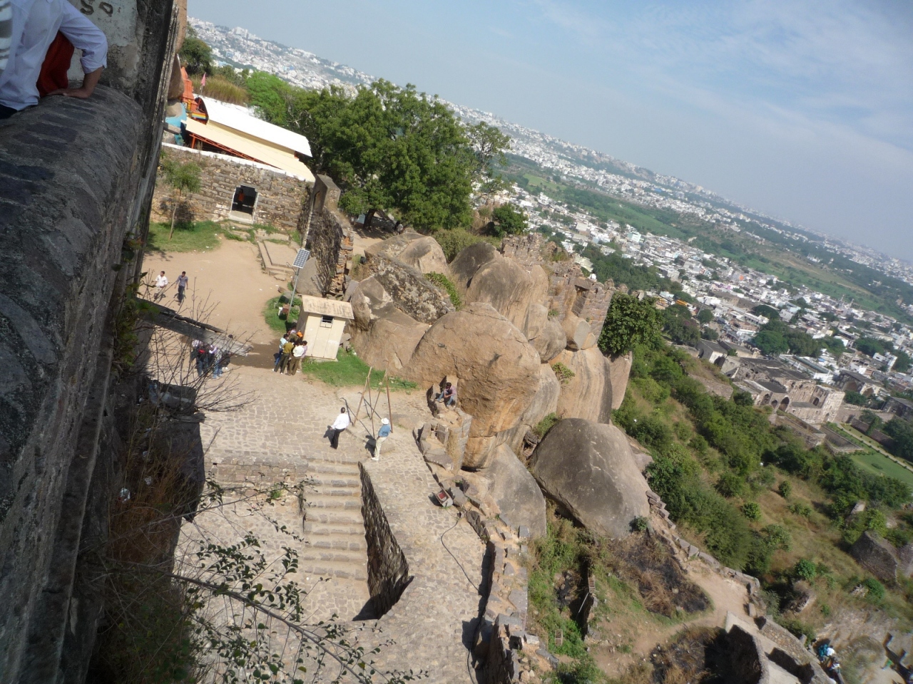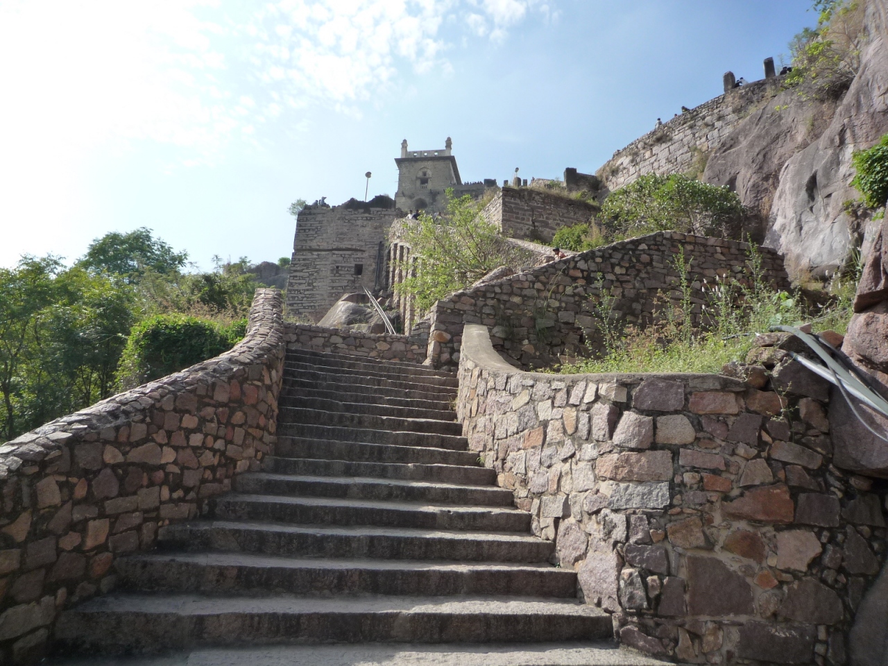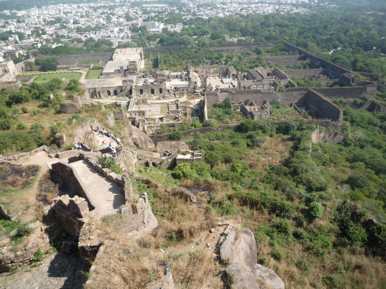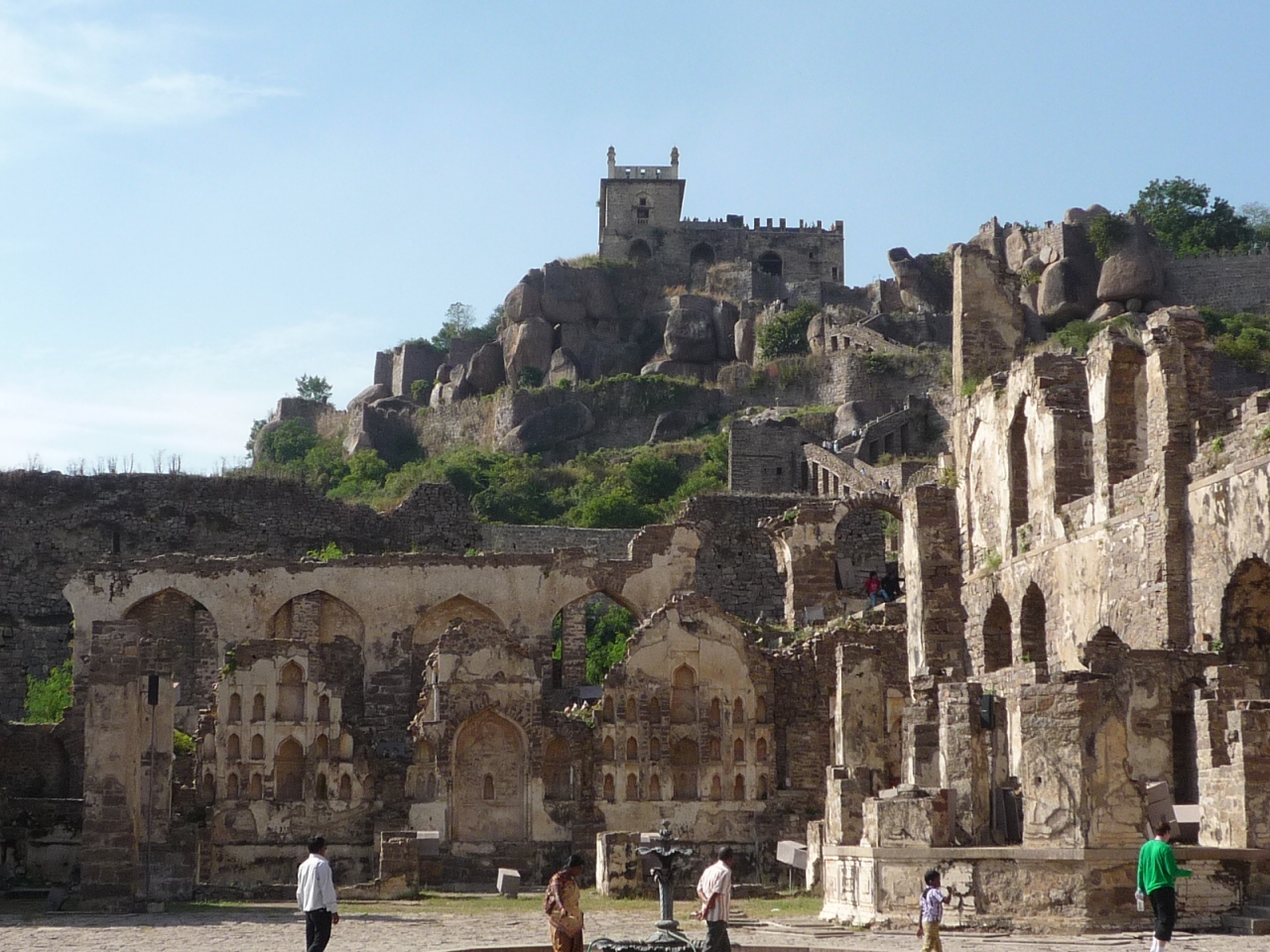 ハイデラバードはカーカティヤ朝のガナパティ王の時代(在位1199~1261)にゴルコンダの岩山に砦を建設したのが始まりです。その後、スルターン・クリー・クトゥブル・ムルクがクトゥブ・シャーヒー王国を建国し砦を強固な石造りのゴルコンダ要塞として再造営しました。その後、1687年クトゥブ・シャーヒー王国はムガル帝国のアウラングゼーブ皇帝指揮の第三次遠征軍の大攻撃を難攻不落のゴルコンダ要塞に篭城、長期にわたる包囲攻城戦をよく持ちこたえていましたが1687年9月21日早朝、城内のアフガニスタン戦士アブドゥッラー・カーンの裏切りにより、キールキー城門からムガル帝国軍が侵攻、クトゥブ・シャーヒー王国守備軍はついにアウラングゼーブ帝遠征軍の前に陥落しました。