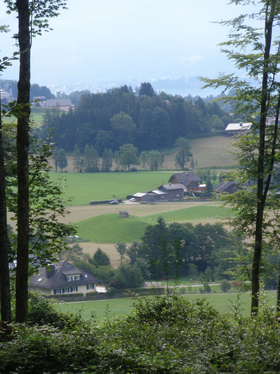 フュールベルグまでは湖畔沿いを歩き、その後は高度を上げて山道に入り、途中 Falkenstein 教会を通り過ぎ、再び山道に入り、高度を下げて湖畔沿いに戻り、その後も、牧草地の横を通り過ぎたり山道に入ったりしてお昼すぎにヴォルフガングの町に到着しました。その後昼食を済ませ、ストローブルまで湖畔の眺めを楽しみながら約2時間のハイキング。