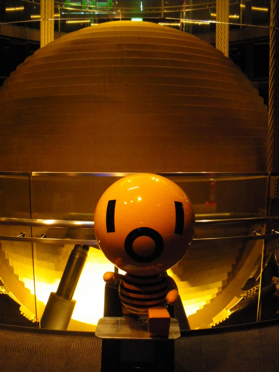 台北のシンボル101に上りました。エレベータで一気に展望室まで上るときに耳がキーンとなりました。上ってみると、台北の街を一望することができました。写真は展望室にあったマスコットキャラ?。名前は忘れましたがカラーリングがいくつかありました。