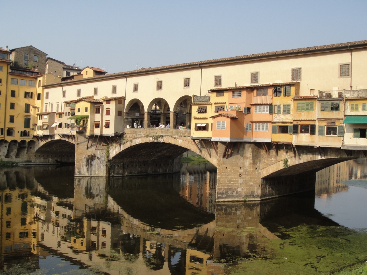 アルノ川にかかるフィレンツェ最古の橋です。この場所にはローマ時代から橋がかかっていましたが、洪水によって何度か流され、現在の橋は1345年につくられたものです。