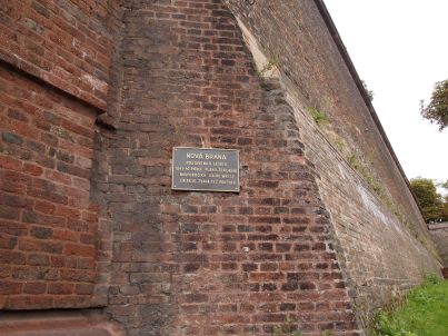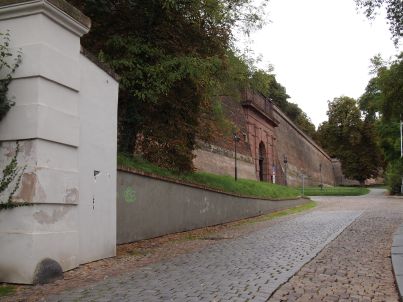 その川から山手を見上げますと石を積み上げた城壁の一部が川を見下ろすように残っています。この地はプラハの繁栄を予言した王妃が住んでいたという話も一部の形が残っているゆえに神秘と共に心に響いてくるようです。