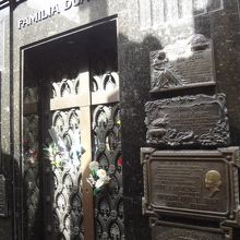 レコレータ墓地の中にあるエビータの墓。奥まったところにありますが、お墓がたくさんある中でここに観光客が集中しているので、すぐに見つけることができると思います。お花やカードなども他のお墓の前にはあまりないのですがここには置かれているのでそれも目印になるでしょう。