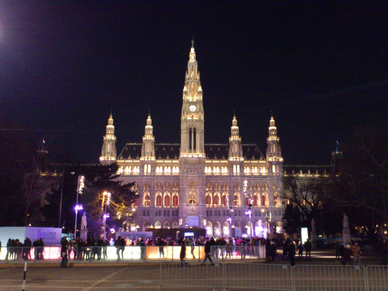 冬は、市庁舎がスケートリンクになっており、地元の人が集う場所に。