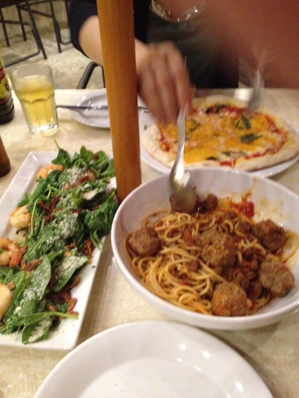 味はアメリカンなイタリアン?という感じでした。お店の雰囲気は、店内はとても天井が高くて開放感があります。また2箇所にテラスがありました。今回テラスで頂きました。