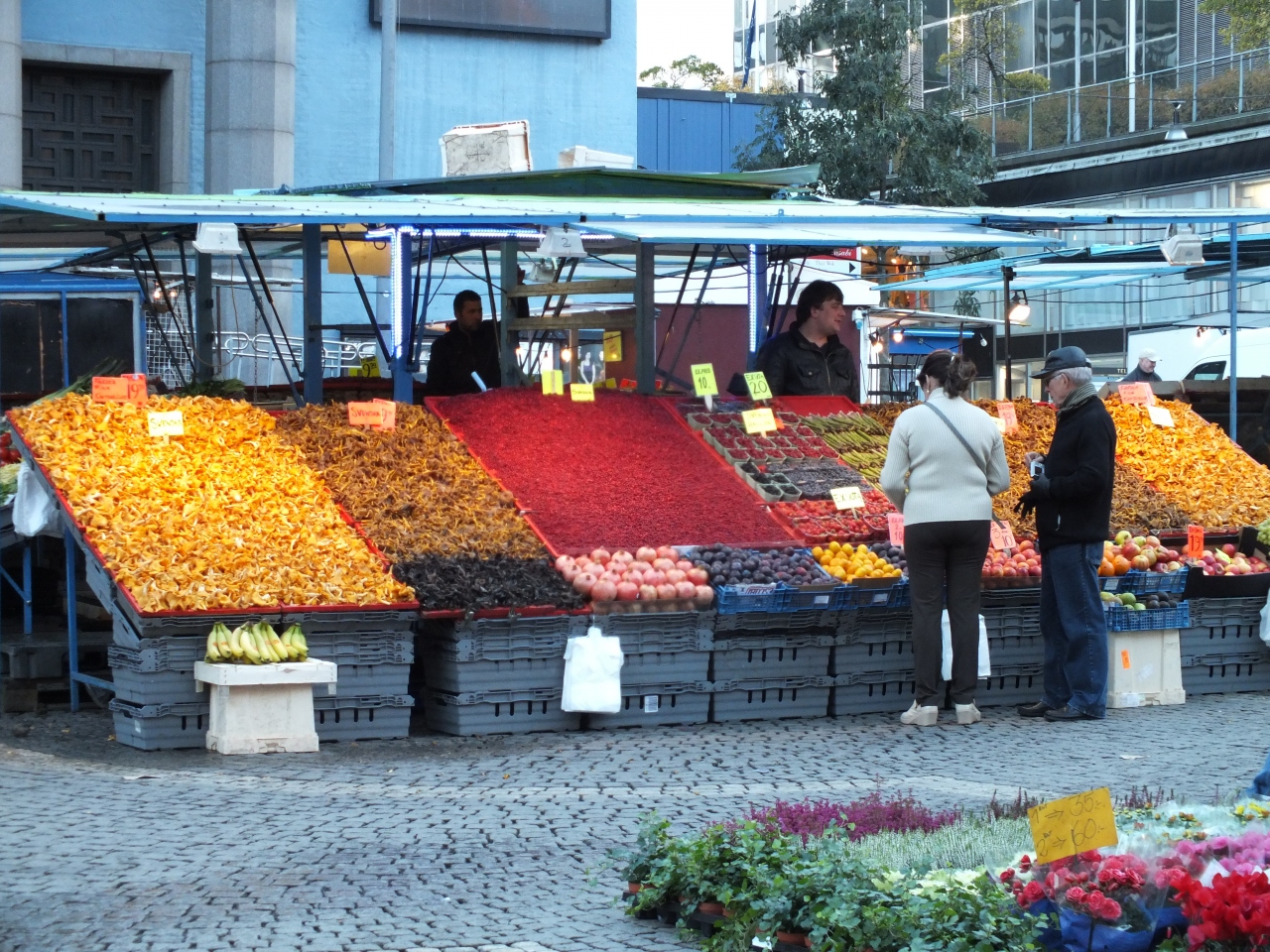 平日と休日では並ぶお店が違い、平日は生花や食べ物を売る店が多かったのですが、休日は土産物、中古品、ガラクタなどを売るフリーマーケットと化しています。