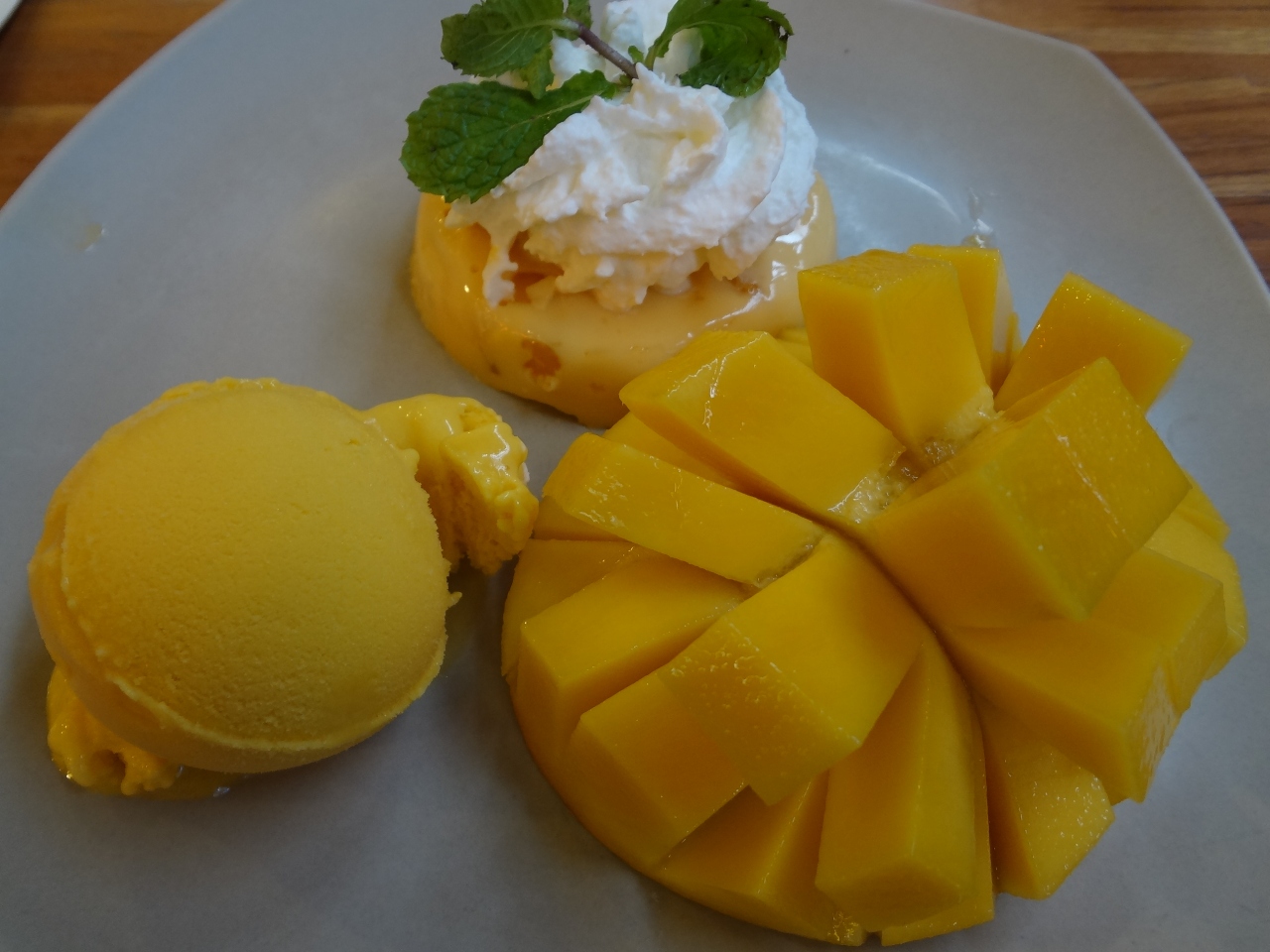 バンコクは2度目ですが、前回来れなかったので今回楽しみにしてきました。日本に来るのはやはり青いうちに輸送されているものが多そうですが、本場のマンゴーはさらに甘くて美味しかったです。マンゴーを使ったデザートも豊富で地元の方にも人気のようです。