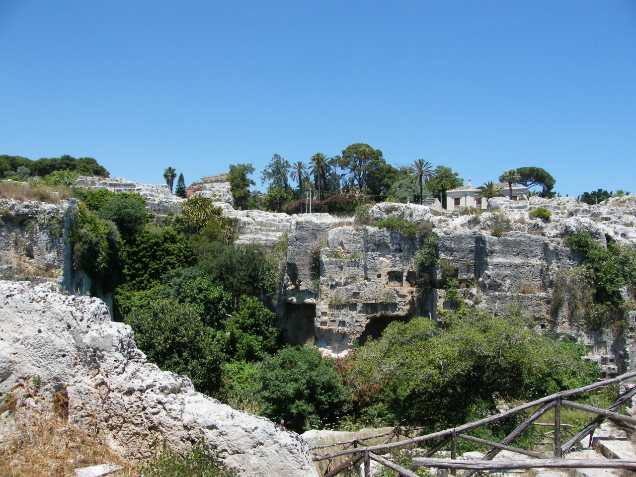 シラクーサの鉄道駅から新市街方面に進み、ネアポリ考古学公園に入って右側一帯が天国の石切り場と呼ばれるエリアです。
