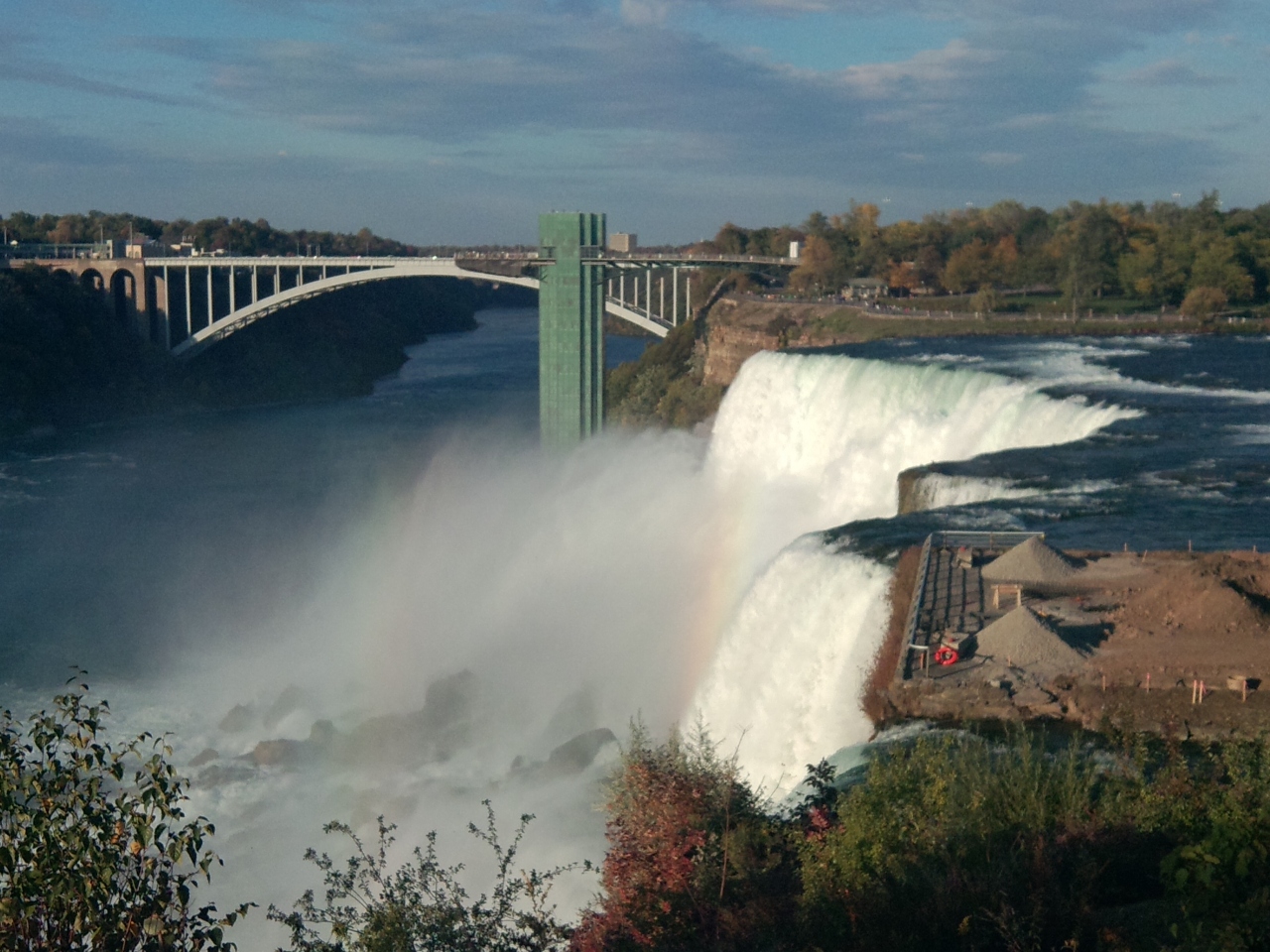 朝からカナダ側の滝周辺の観光スポットを一通り回って、午後15時。思案の末、せっかくここまで来たのだから、アメリカ側にも行ってみようと思い立って、レインボーブリッジのお世話になりました。小銭を用意してカナダを出国。アメリカの入国手続きは、エントリーシートの記入に手間取って、時間がかかってしまいましたが、滝をアメリカ側から眺めることが出来て、カナダ側からのビューとは異なるダイナミックさに大感動。カナダ側だけに終わらずに、アメリカ側からの絶景もぜひとも眺めてください。夕食はアメリカ側の「ハードロックカフェ」で食べました。カナダ側よりも税金が安くて得した気分でした。