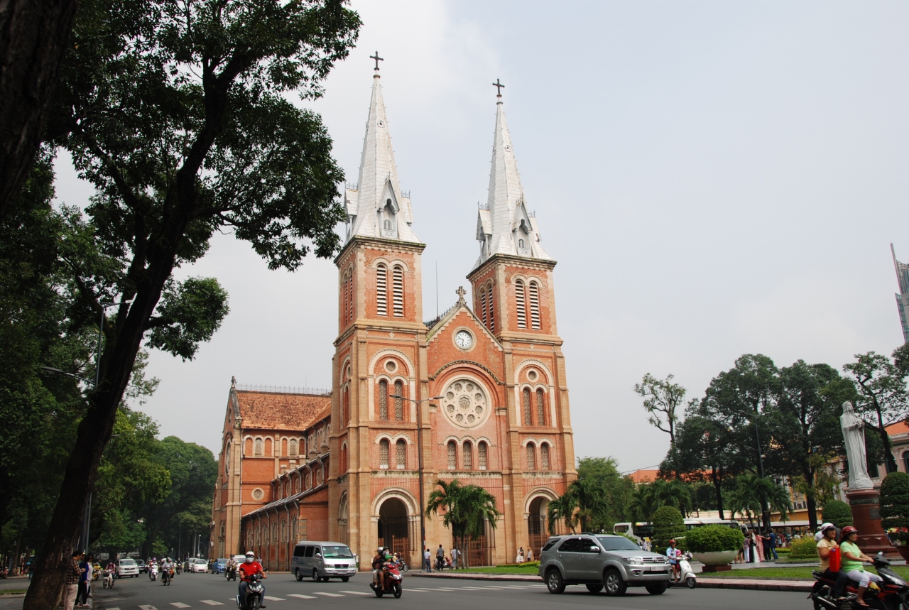 空港から町中に入る時は必ずここを通ります。午前中の空いている時間は是非中に入ってみて下さい。熱帯の暑い中にも荘厳な空気が漂う空間に感銘を覚えます。建物の赤い壁面の美しさに加えて、ステンドグラスの光がとっても印象的でした。